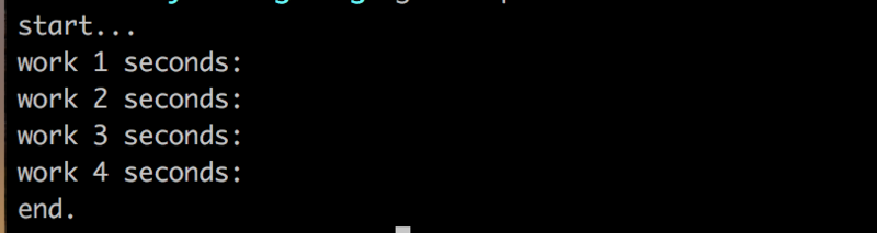 fmt.Printf("work %d seconds: \n", i)