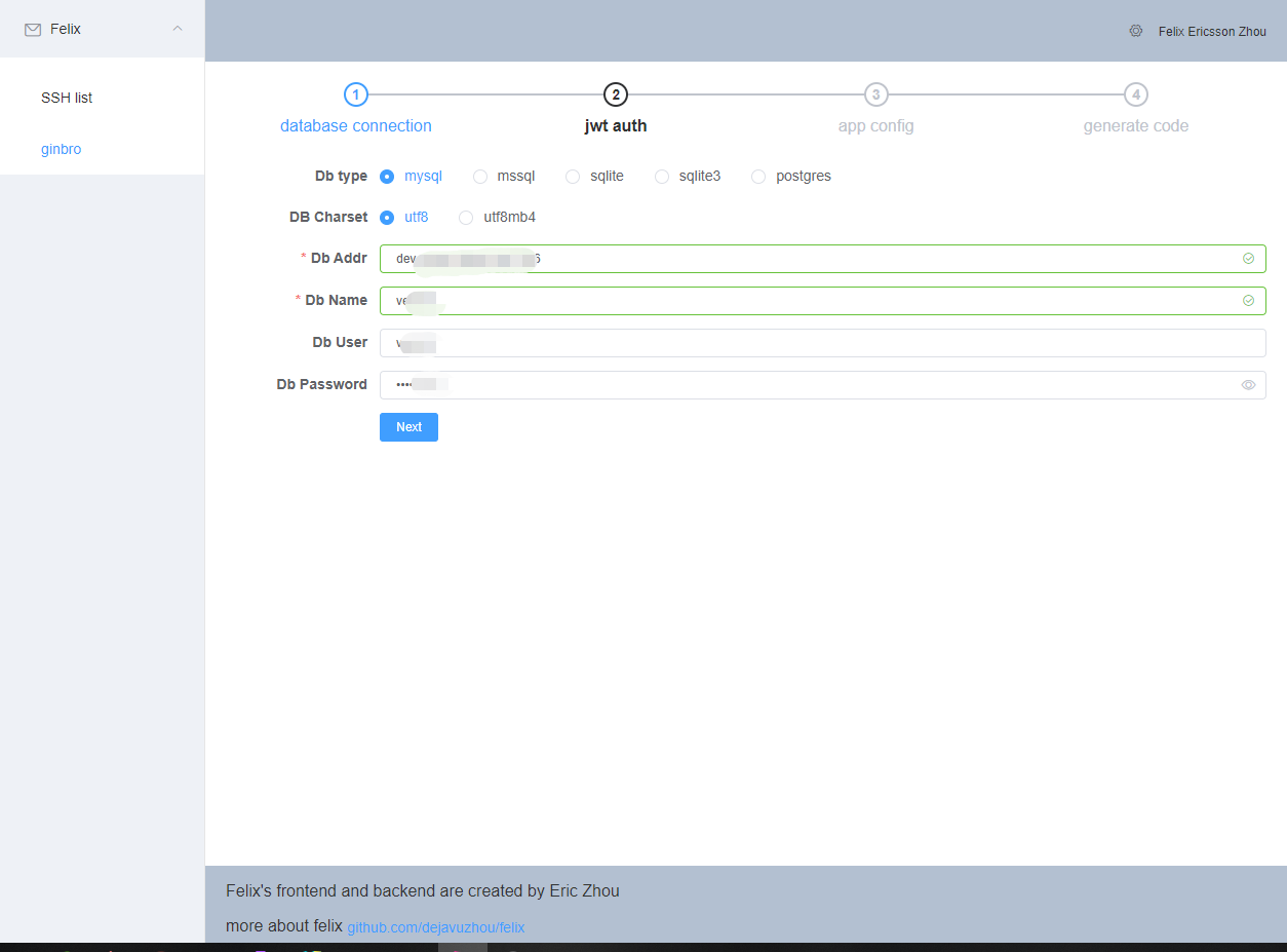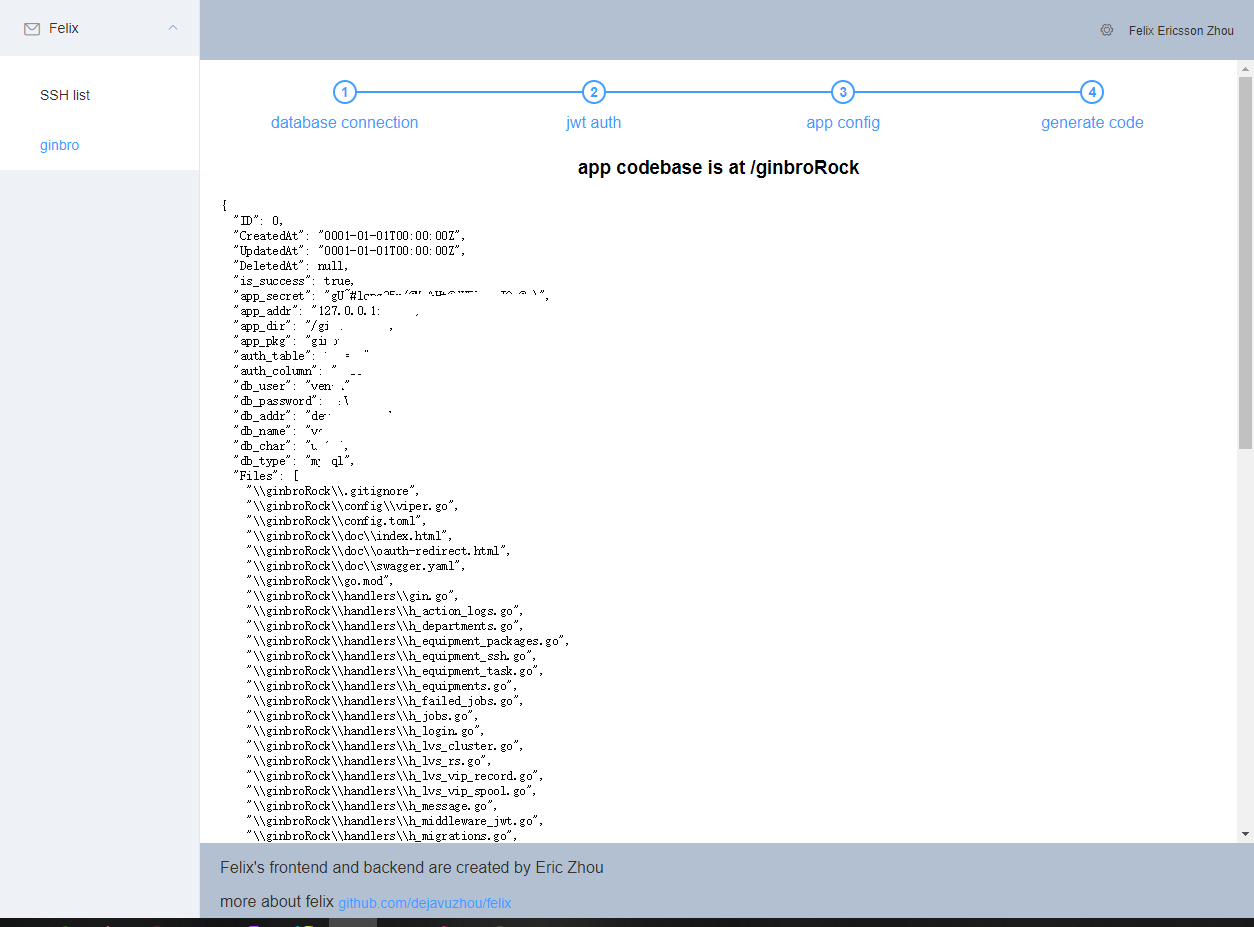 felix ginbro -a dev.wordpress.com:3306 -P go_package_name -n db_name -u db_username -p 'my_db_password' -d '~/thisDir'